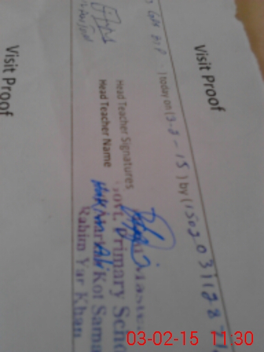 | School Visited by School Health & Nutrition Supervisor (No. of Visits) | 1 | Name1: | M JAWAD | Name2: | |