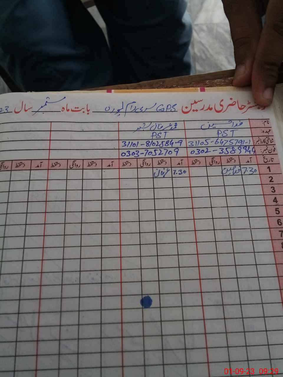 | Name: FI**** HU**** Designation: (School Headmaster's/Headmistress's) PST Phone/Cell Number: 03**** |