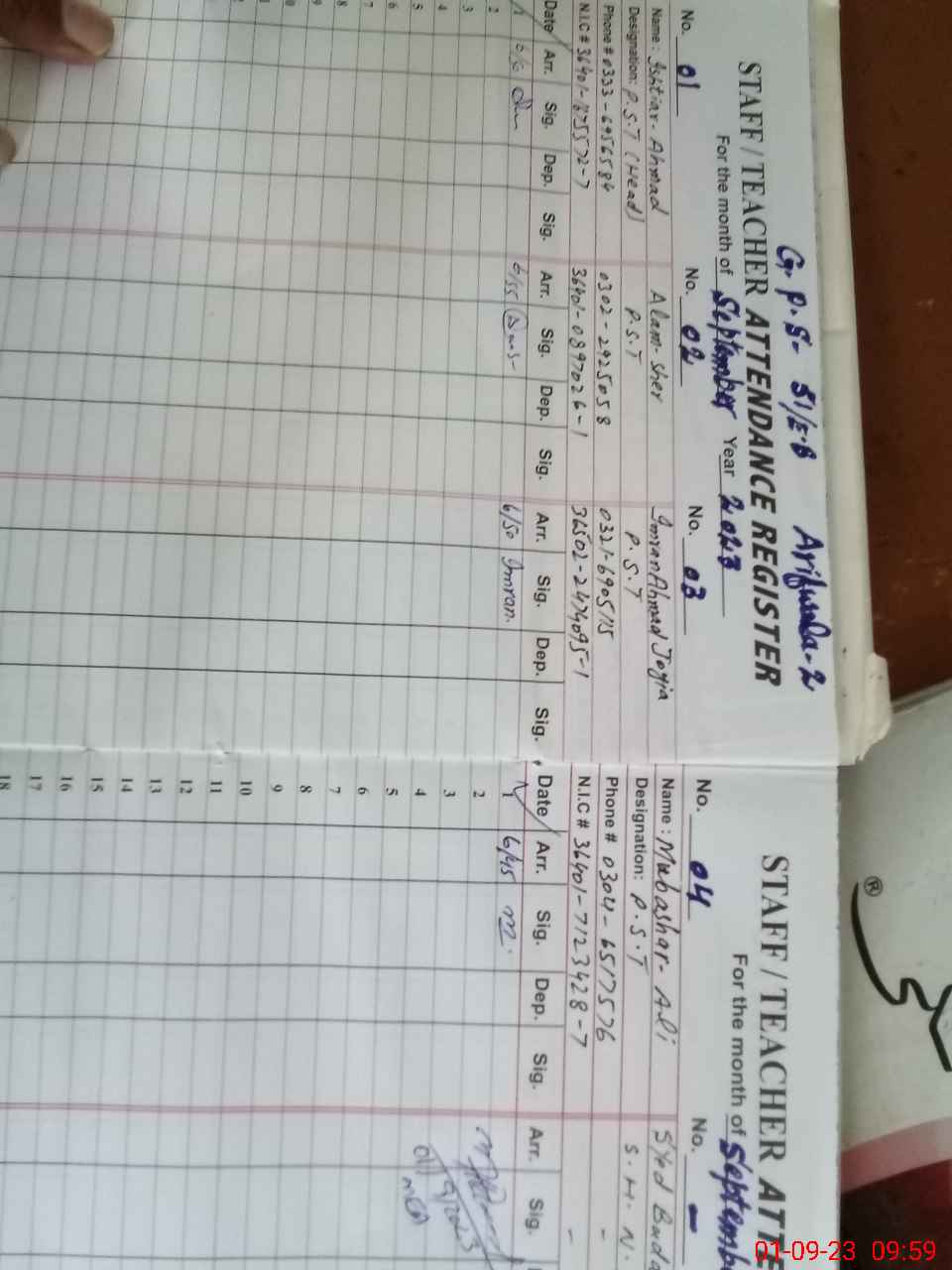 | Name: IS**** AH**** Designation: (School Headmaster's/Headmistress's) PST Phone/Cell Number: 03**** |