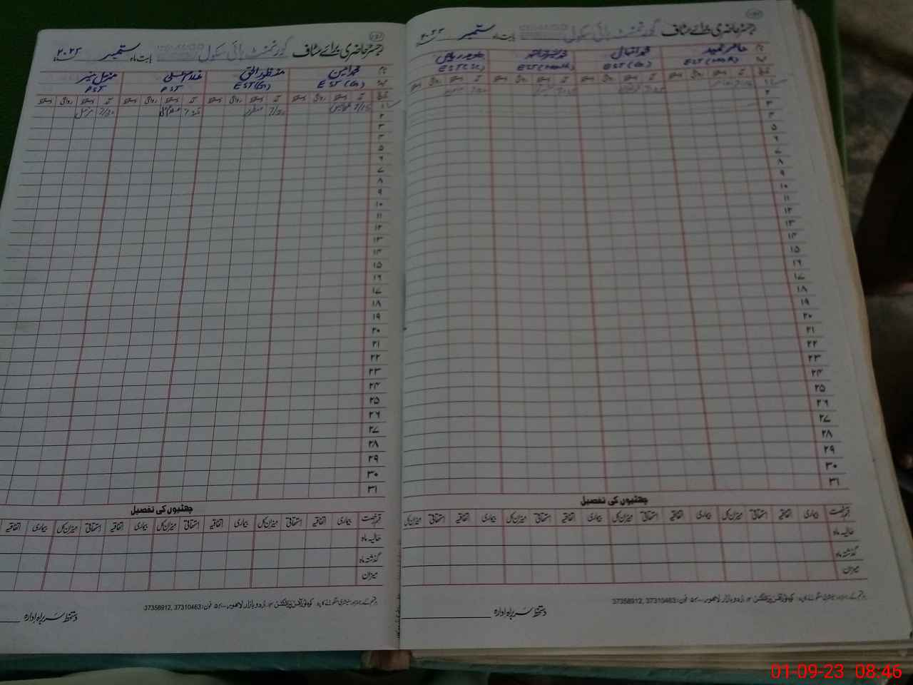 | CNIC | Full Name | Designation | R/C | Absence During Last Calender Month |