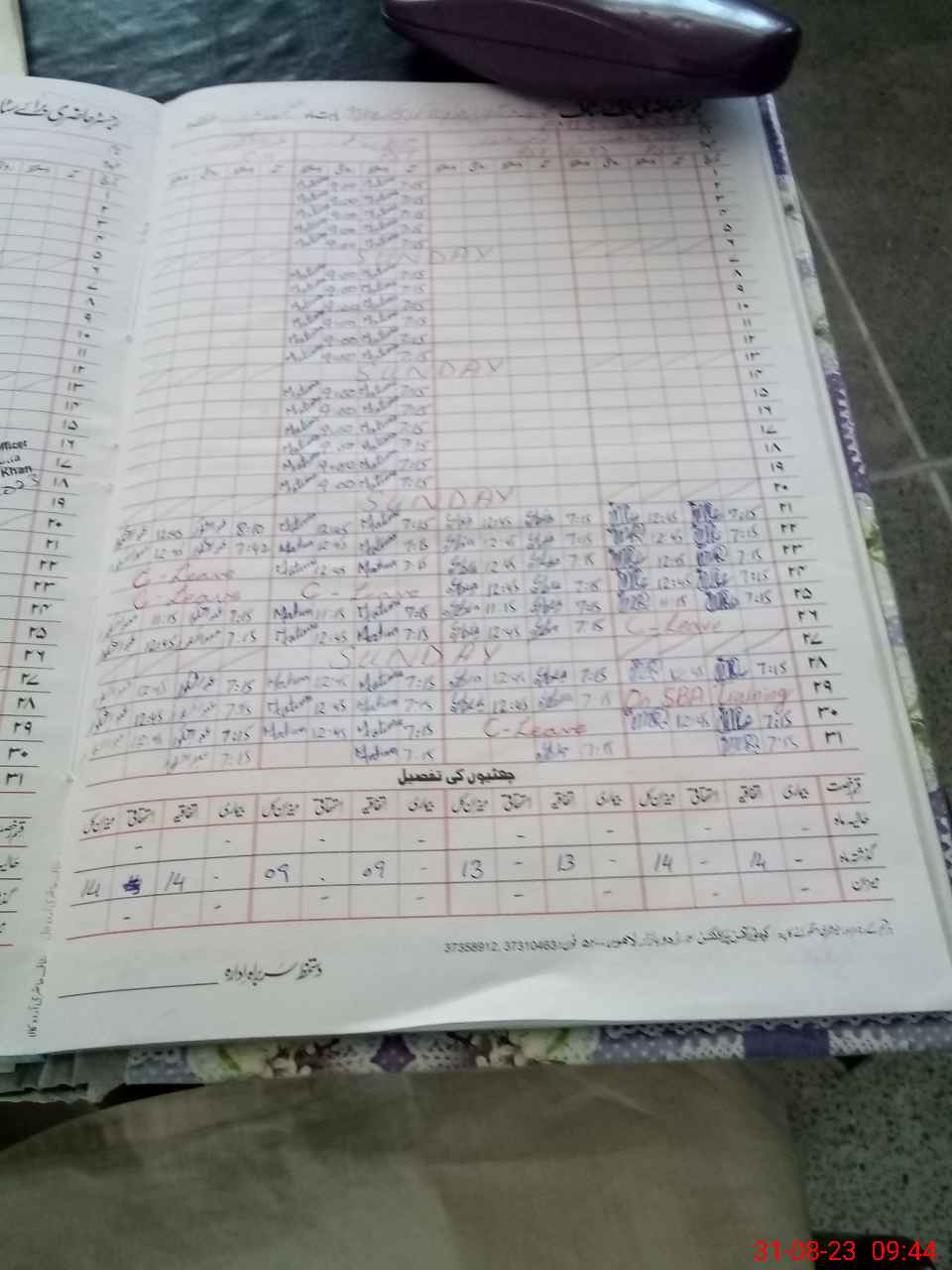 | Leave | Duty | Absent | Maternity | Medical | Ex- Pak |