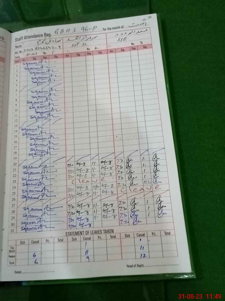 | 33**** | Ma**** Sh**** | EST(GENERAL) | Temporary | 0 | 0 | 0 | 0 | 0 | 0 | 0 | 0 | 0 | Ex-Pak |