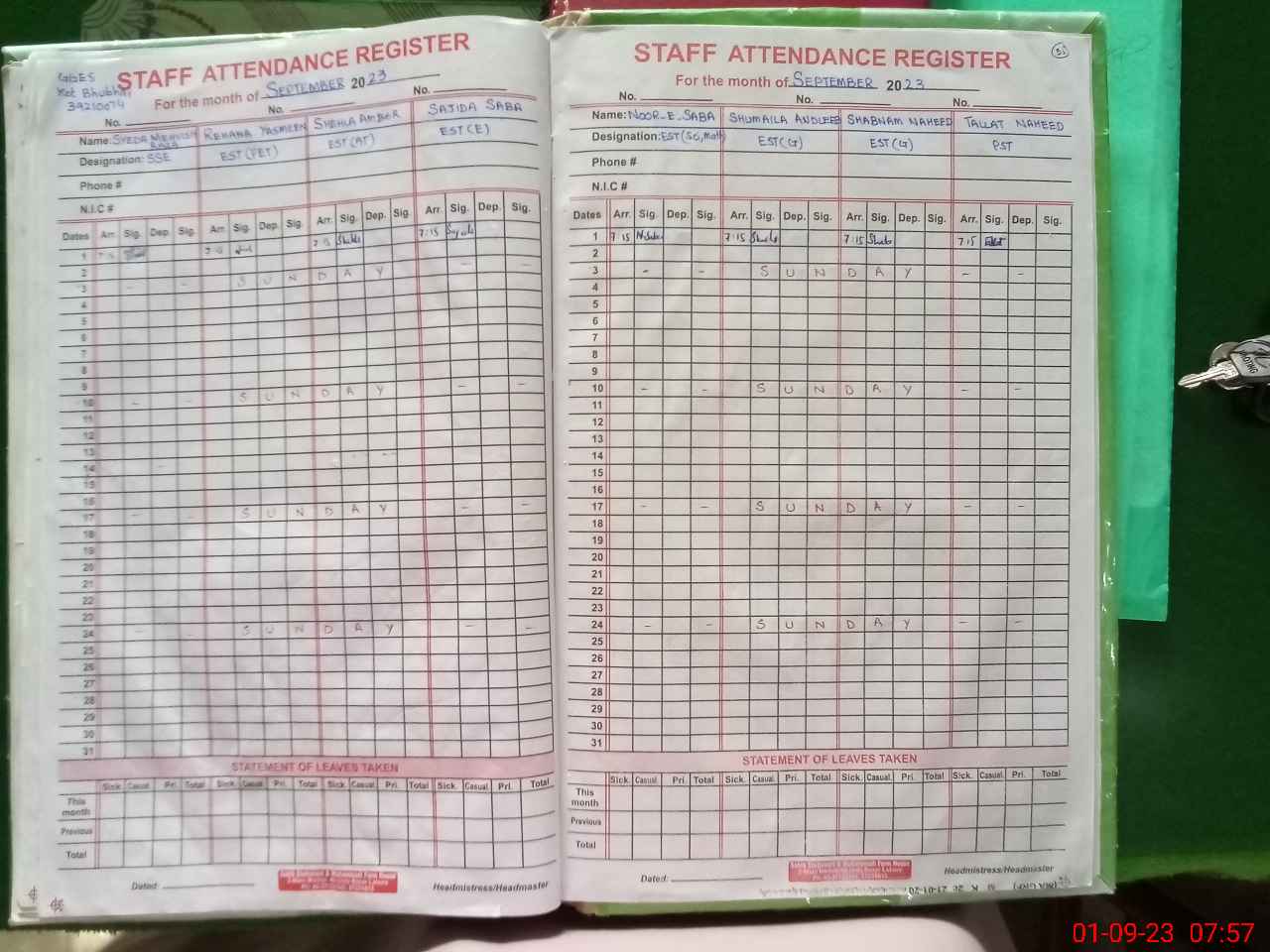 | Name: SY**** ME**** RA**** Designation: (School Headmaster's/Headmistress's) SSE SCIENCE Phone/Cell Number: 03**** |