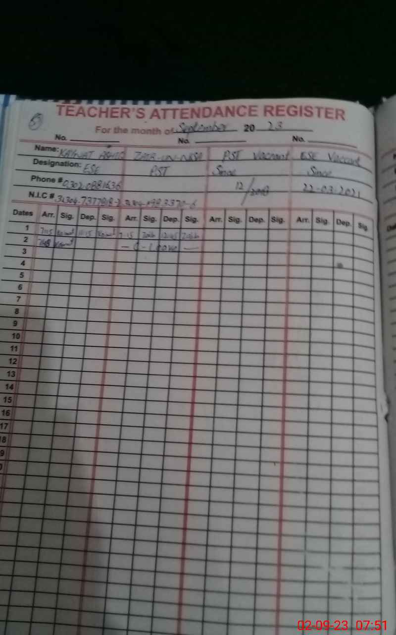 | Name: KA**** AS**** Designation: (School Headmaster's/Headmistress's) PST Phone/Cell Number: 03**** |
