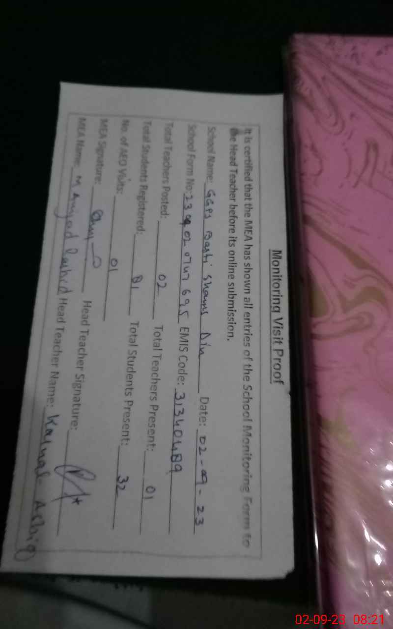 | EMIS Code: 31340489 | Name of School: GGPS BASTI SHAMAS DIN | |||