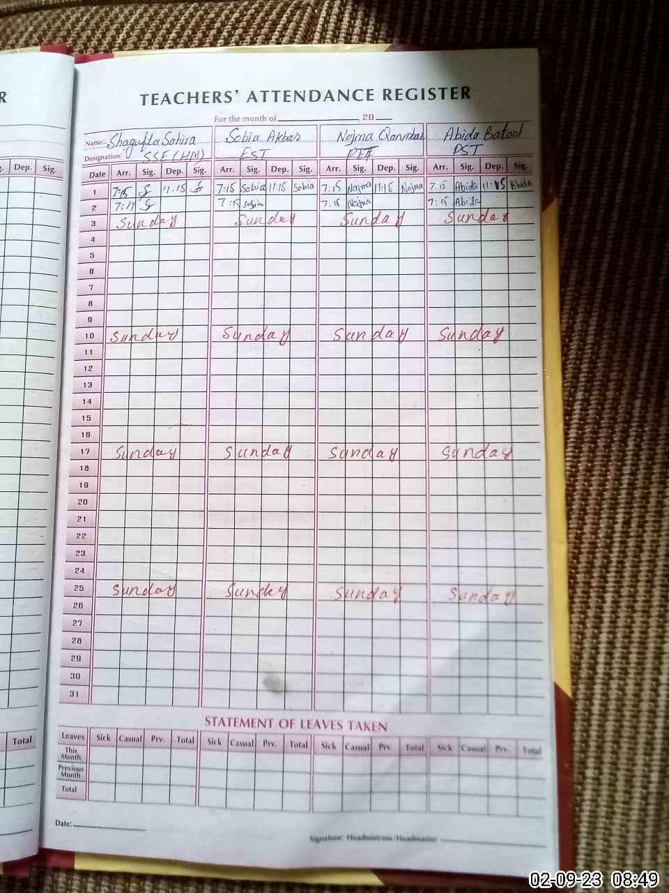 | Remarks (Use Separate Page if Required): NSB record not updated 04 teacher absent and NSB teacher also absent | |||||