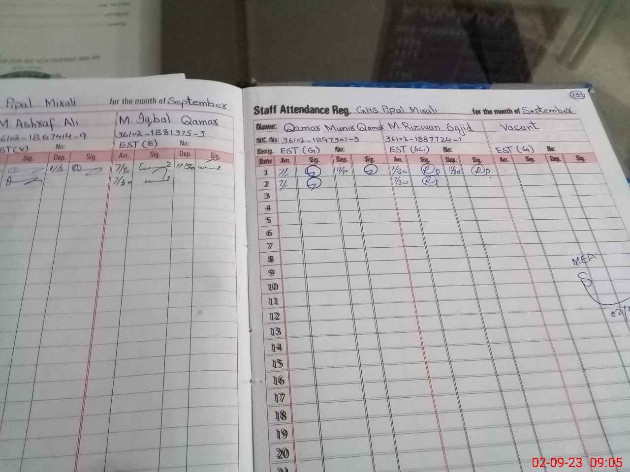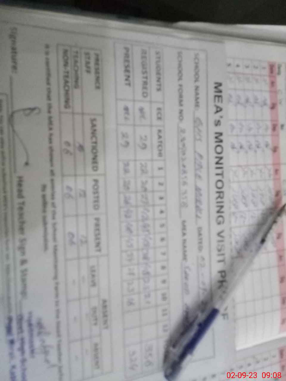 | Attendance Register | Head Teacher | MEA with School | Visit Proof |