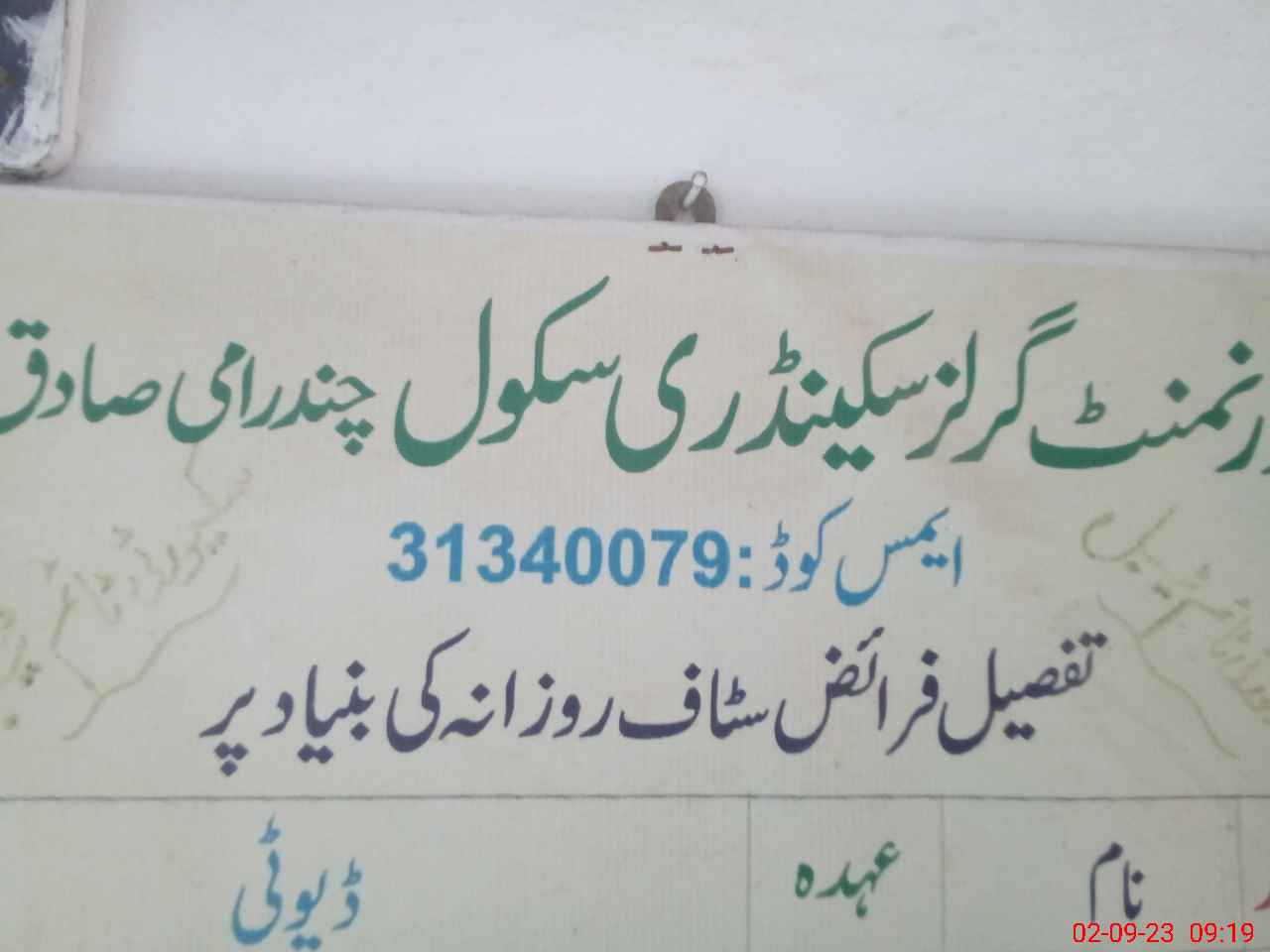 | EMIS Code: 31340079 | Name of School: GGHS CHAND RAMI | |||