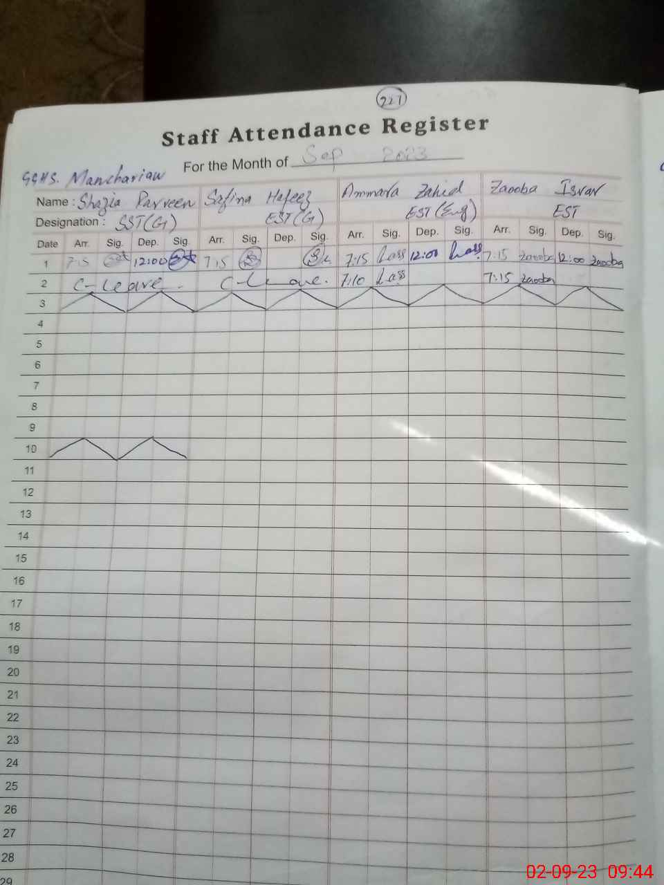 | CNIC | Full Name | Designation | R/C | Absence During Last Calender Month |