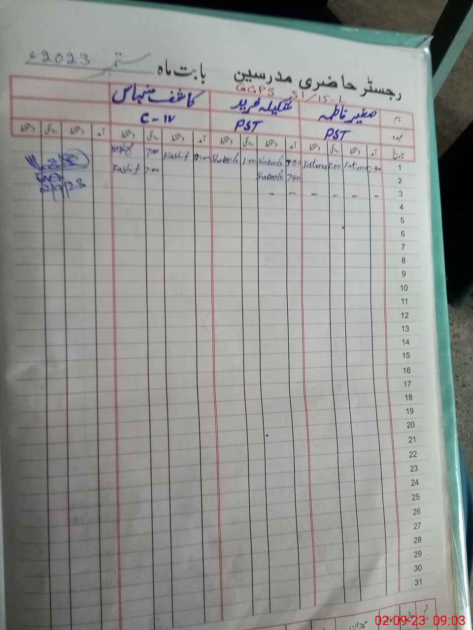 | Name: Sa**** Fa**** Designation: (School Headmaster's/Headmistress's) PST Phone/Cell Number: 03**** |