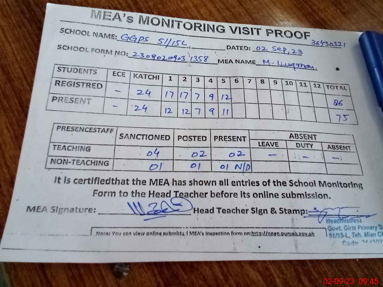 | EMIS Code: 36430321 | Name of School: GGPS 51/15-L, MIAN CHANNU | |||