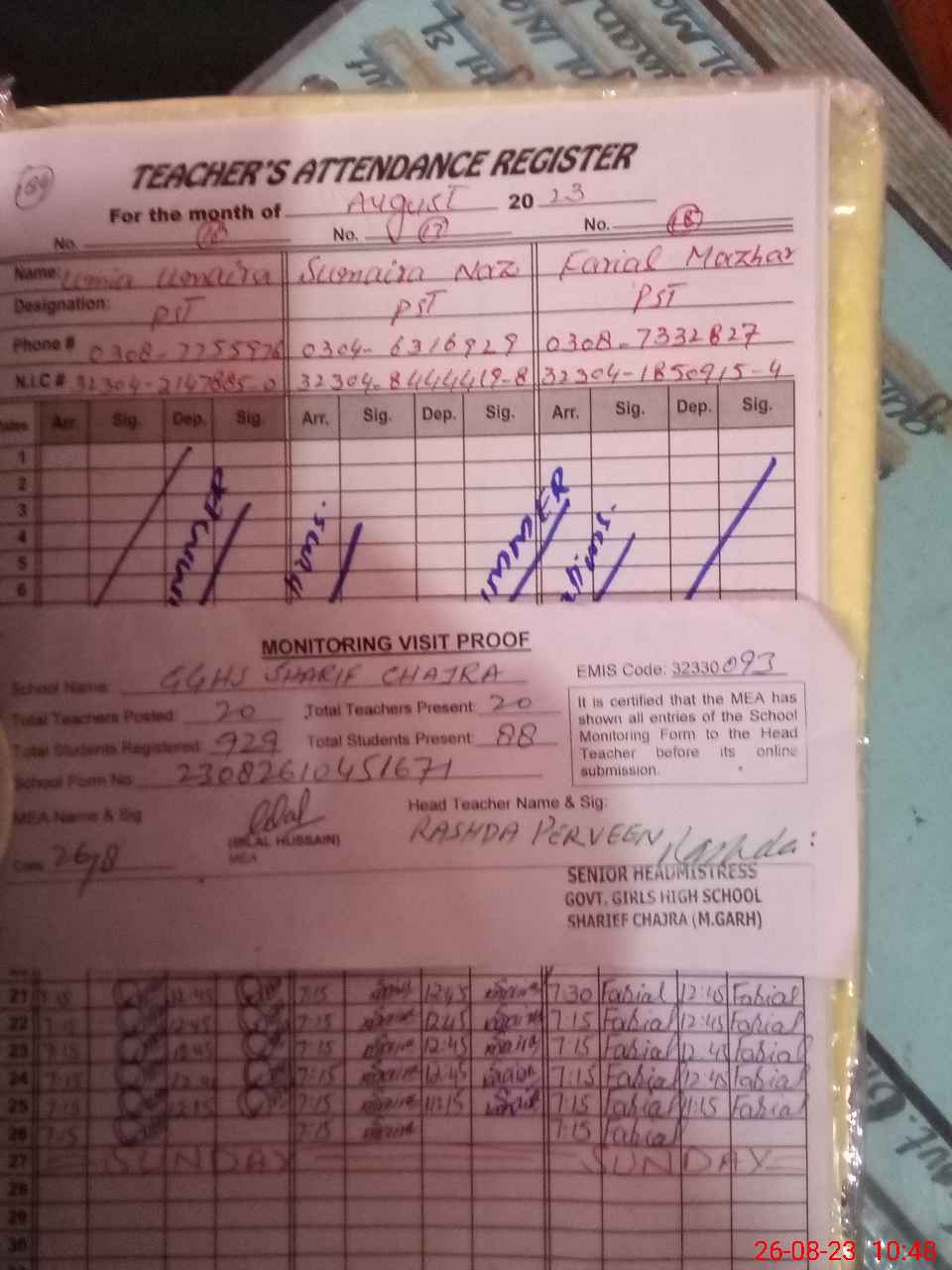 | EMIS Code: 32330093 | Name of School: GGHS SHARIF CHAJRA | |||