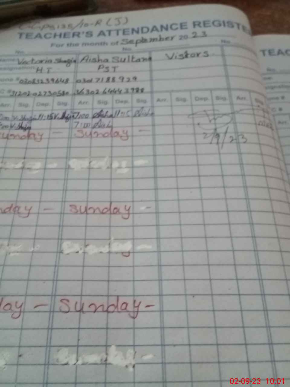 | Name: Ve**** Sh**** Designation: (School Headmaster's/Headmistress's) ESE (ARTS) Phone/Cell Number: 03**** |