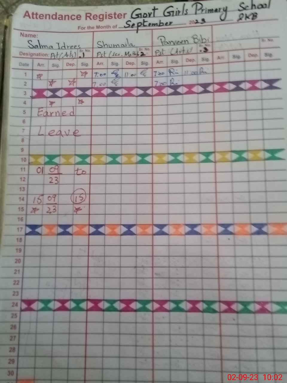 | District: PAKPATTAN | Tehsil: PAKPATTAN | Markaz: PAKPATTAN 2 - FEMALE | Level: Primary | |