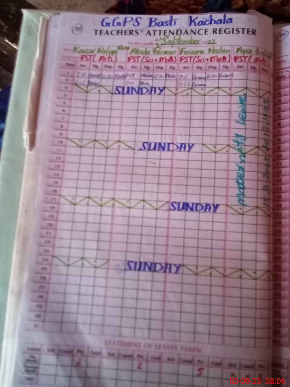 | 36**** | Aq**** Ir**** | PST | Regular | 31 | 0 | 0 | 31 | 0 | 0 | 0 | 0 | 0 | Maternity |
