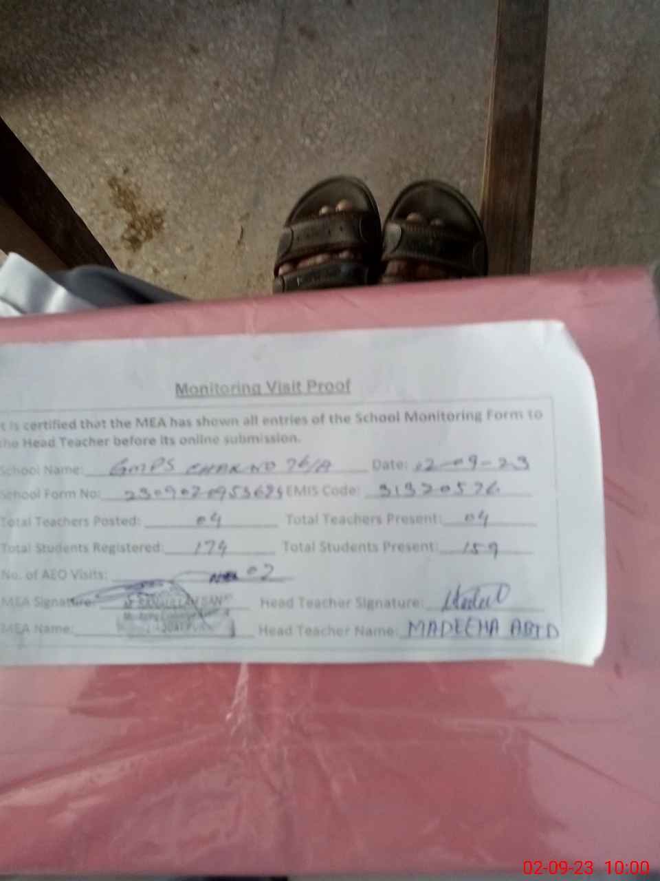 | EMIS Code: 31320576 | Name of School: GMPS CHAK 76/A | |||