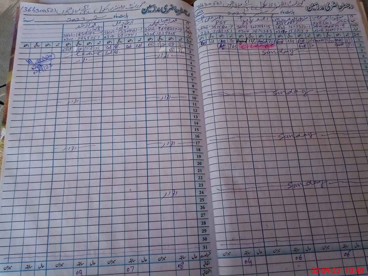 | CNIC | Full Name | Designation | R/C | Absence During Last Calender Month |