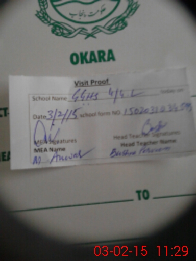 | School Visited by School Health & Nutrition Supervisor (No. of Visits) | 1 | Name1: | Mian Abdul Qadir | Name2: | |