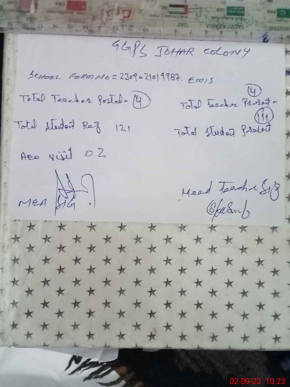 | Attendance Register | Head Teacher | MEA with School | Visit Proof |