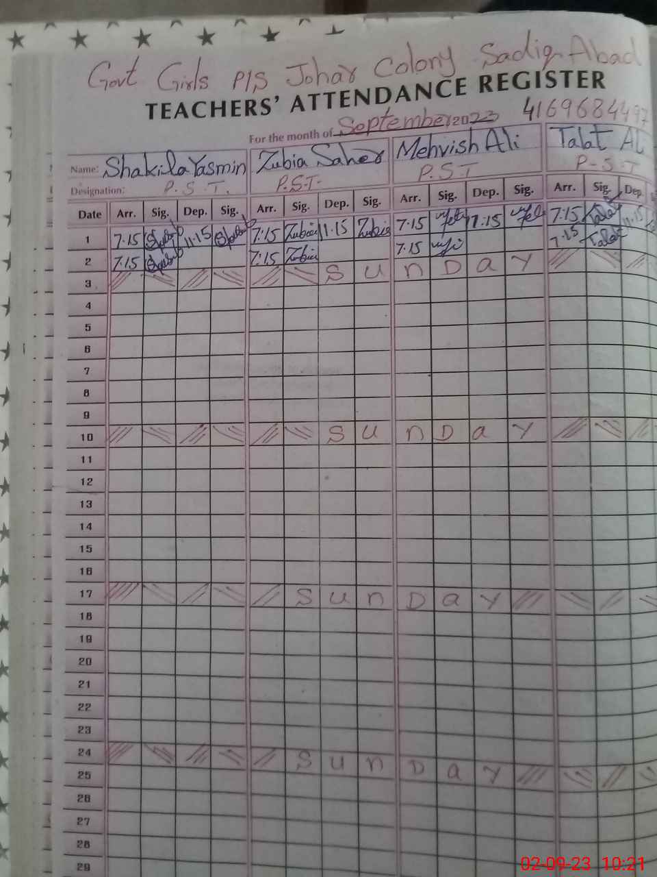 | Name: Sh**** No**** Designation: (School Headmaster's/Headmistress's) PST Phone/Cell Number: 03**** |