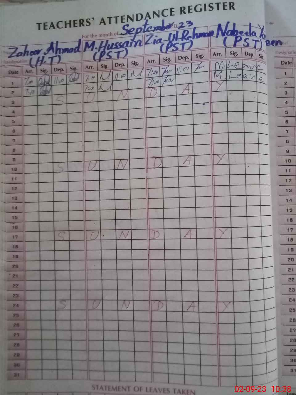 | Name: Za**** Ah**** Designation: (School Headmaster's/Headmistress's) PST Phone/Cell Number: 03**** |
