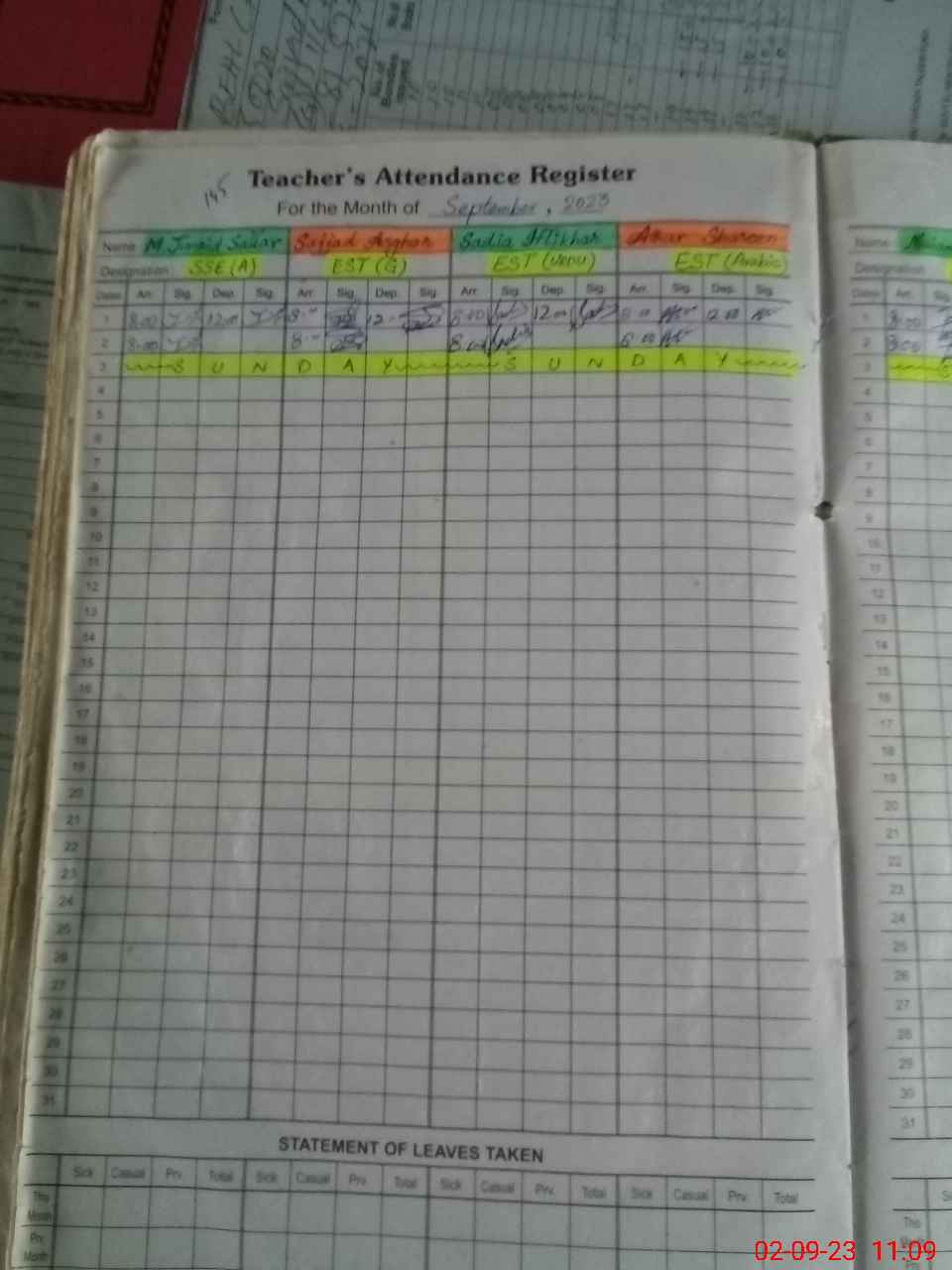 | Attendance Register | Head Teacher | MEA with School | Visit Proof |