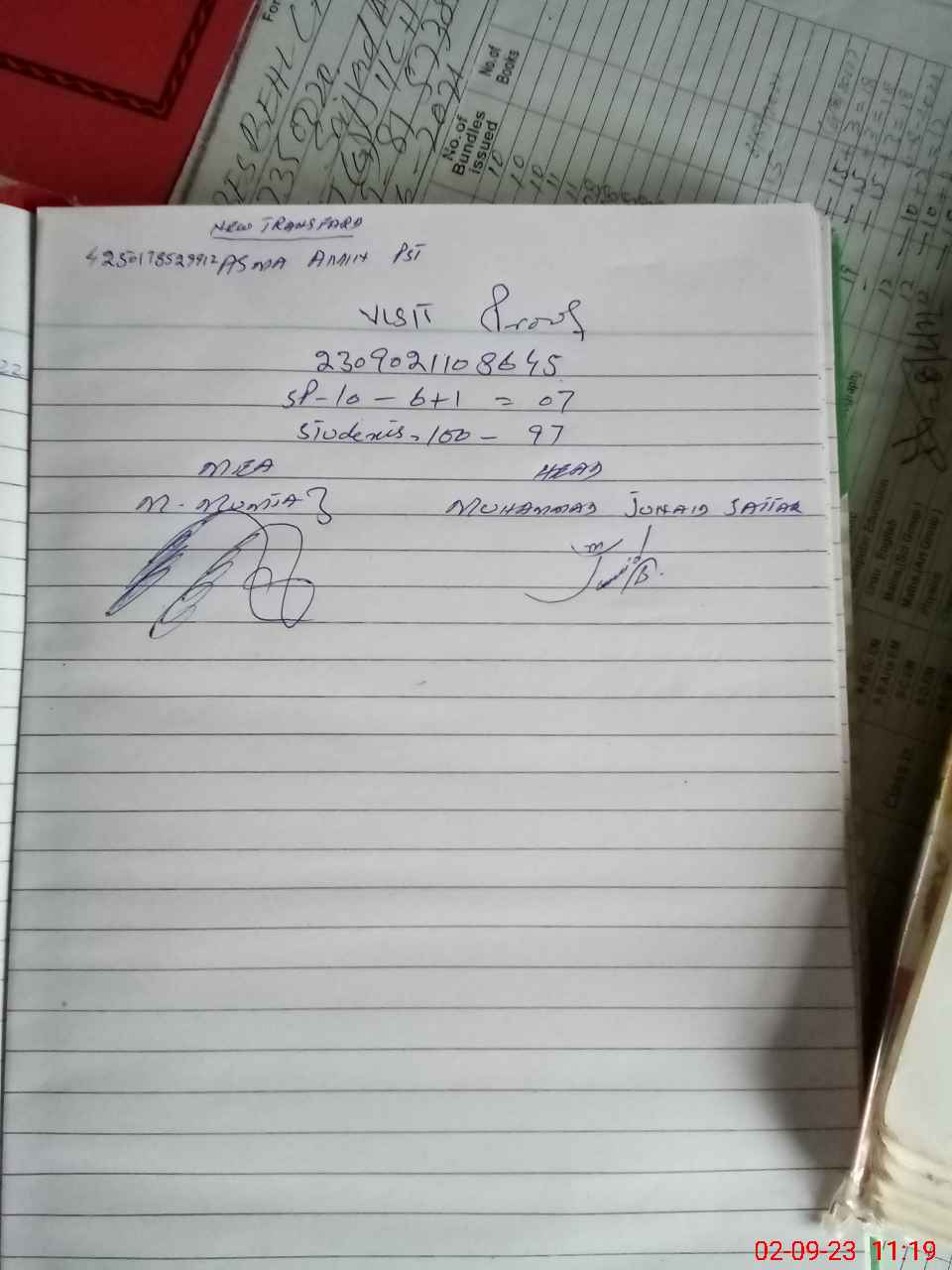 | Name: MU**** SA**** Designation: (School Headmaster's/Headmistress's) SSE Phone/Cell Number: 03**** |