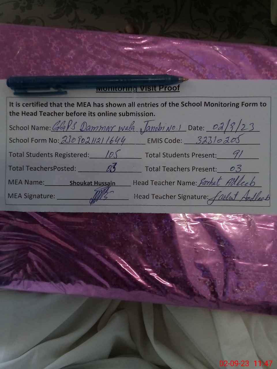 | EMIS Code: 32310205 | Name of School: GGPS DAMMER WALA JANUBI NO. 1 | |||