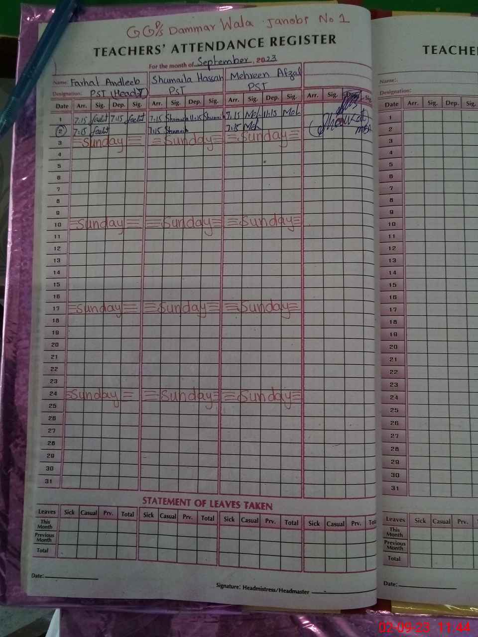 | Remarks (Use Separate Page if Required): 01 teacher Shazia Raheem PST posted out to GHS Baazwala but suitable replacement is not arrived yet which impect the disturbance of children education | |||||