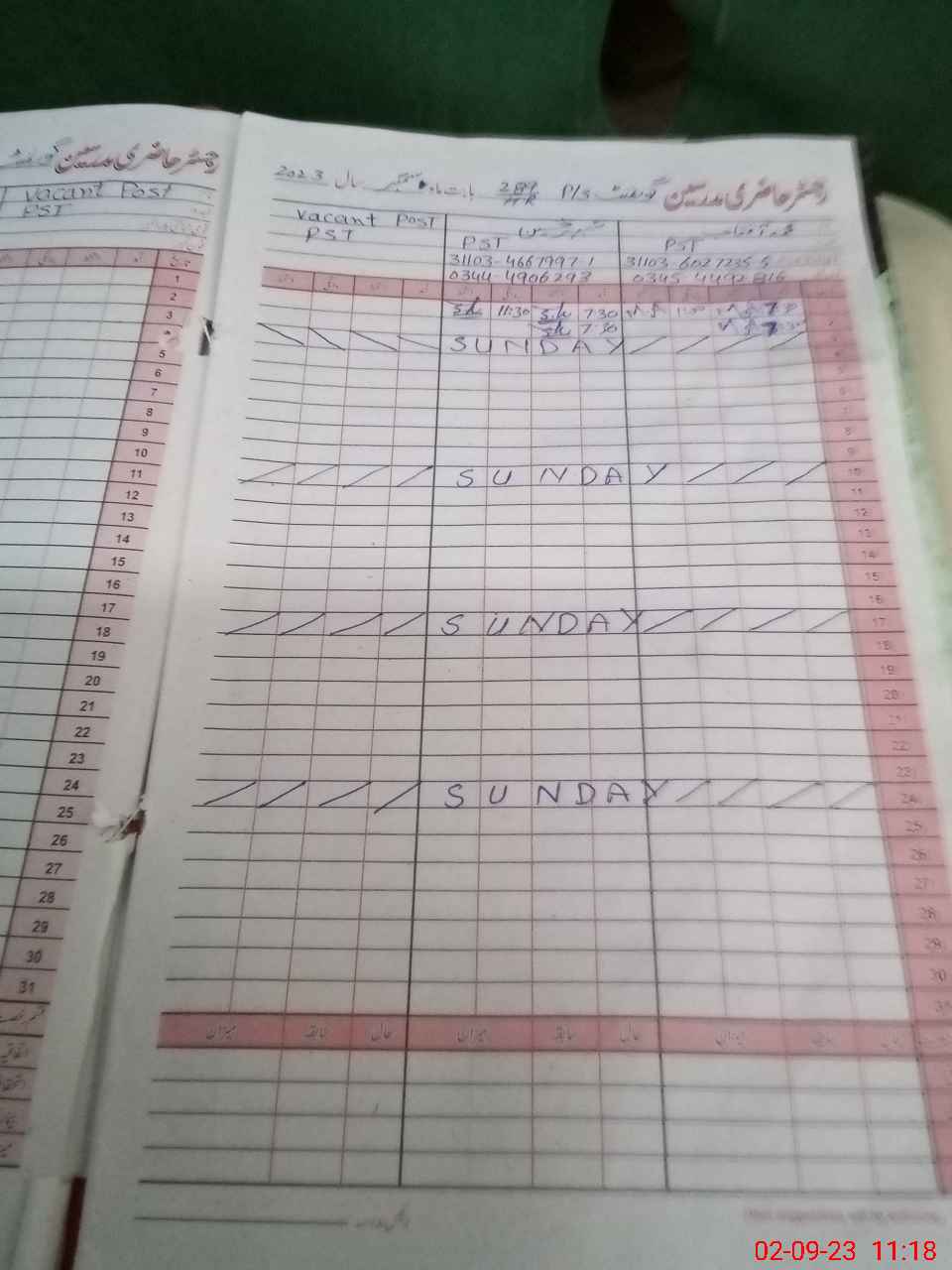 | CNIC | Full Name | Designation | R/C | Absence During Last Calender Month |