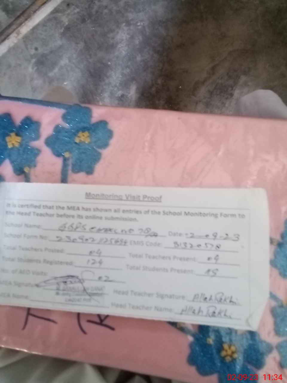 | EMIS Code: 31320578 | Name of School: GGPS CHAK 78/A | |||