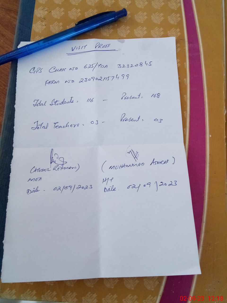 | EMIS Code: 32320845 | Name of School: GPS CHAK NO.625 TDA | |||