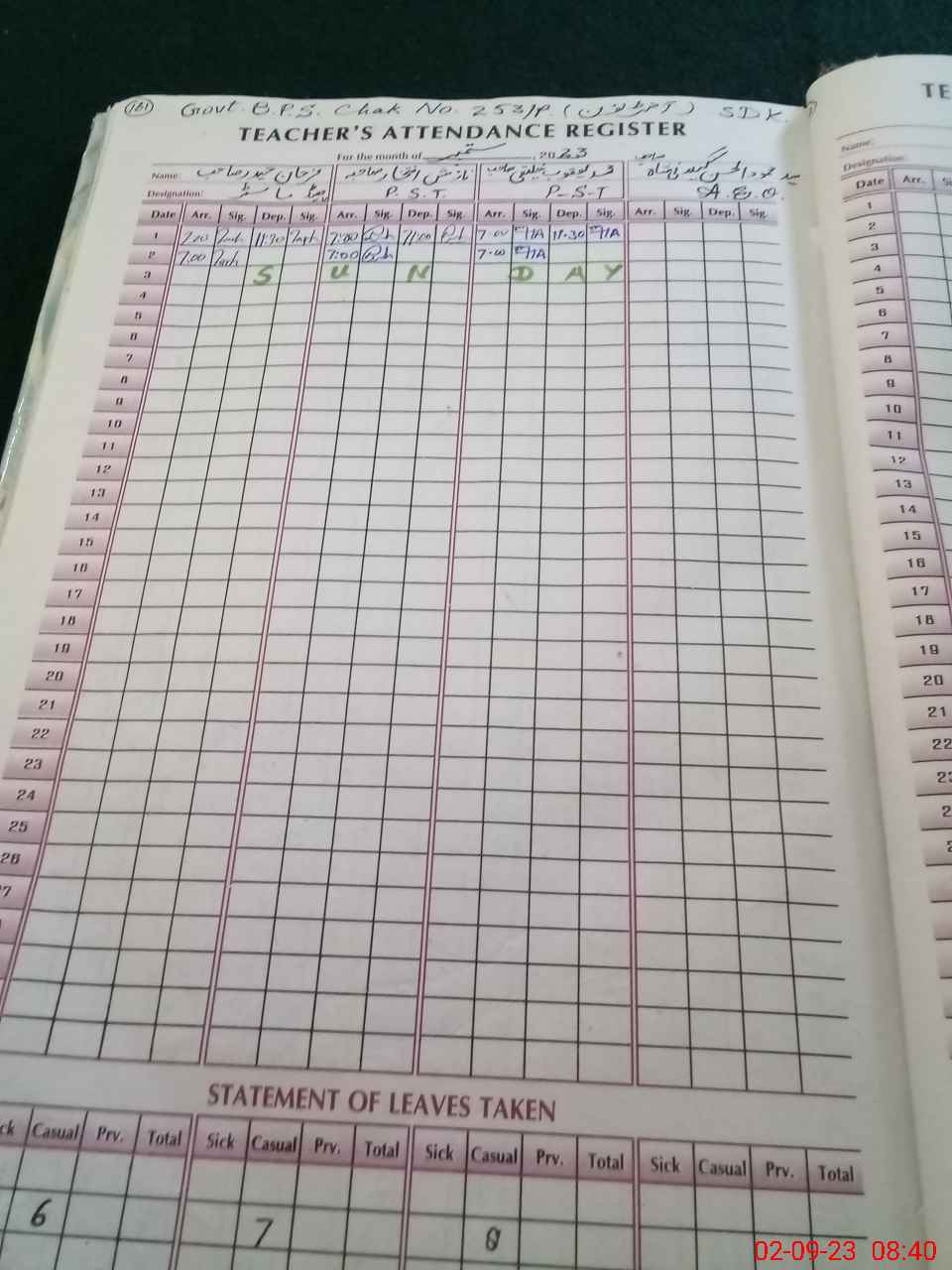 | Name: Fa**** Ha**** Designation: (School Headmaster's/Headmistress's) PST Phone/Cell Number: 03**** |