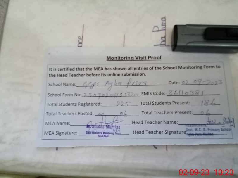 | Certified that this School was Inspected by the Undersigned MEA/DMO Today and the Information Stated Above is as Per Record. | |||||