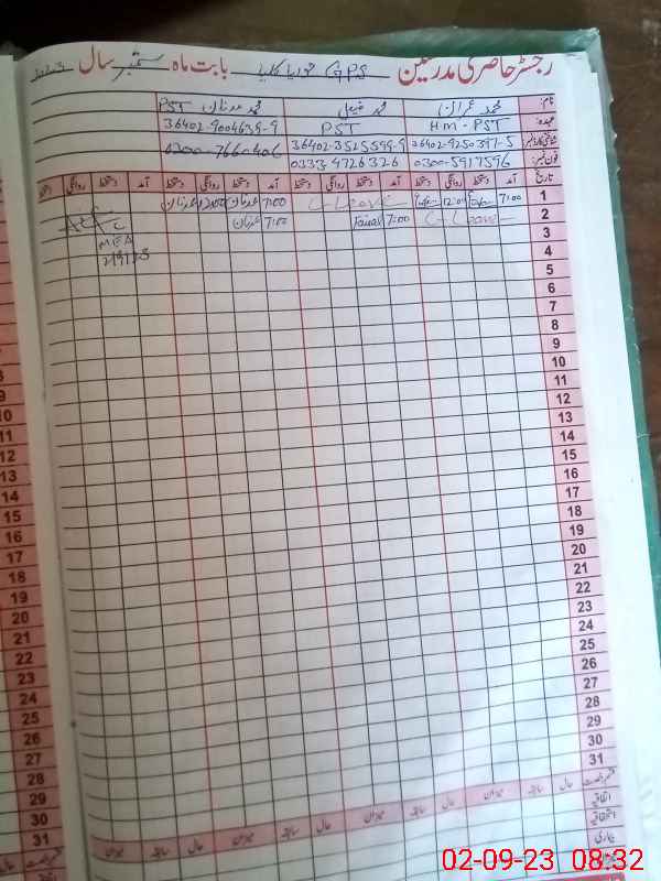 | Name: MU**** Fa**** Designation: (School Headmaster's/Headmistress's) PST Phone/Cell Number: 03**** |