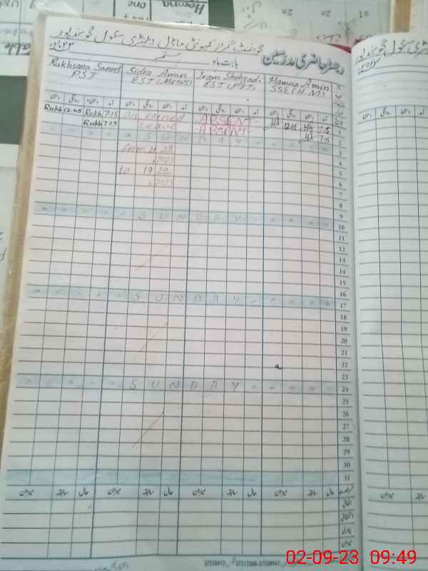 | Name: Si**** Am**** Designation: (School Headmaster's/Headmistress's) EST Phone/Cell Number: 03**** |