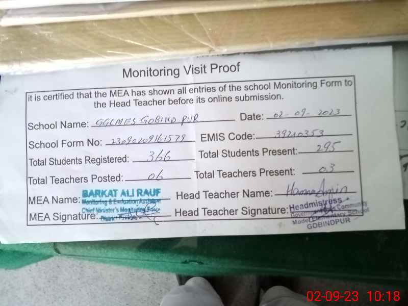 | EMIS Code: 39210353 | Name of School: GGCMES GOBIND PUR | |||