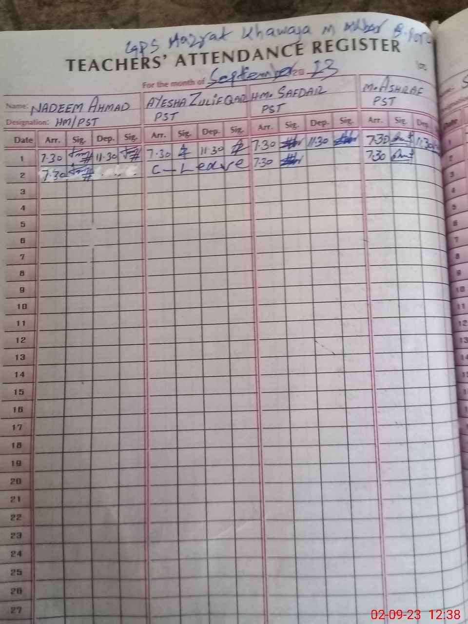 | Name: Mu**** As**** Designation: (School Headmaster's/Headmistress's) PST Phone/Cell Number: 03**** |