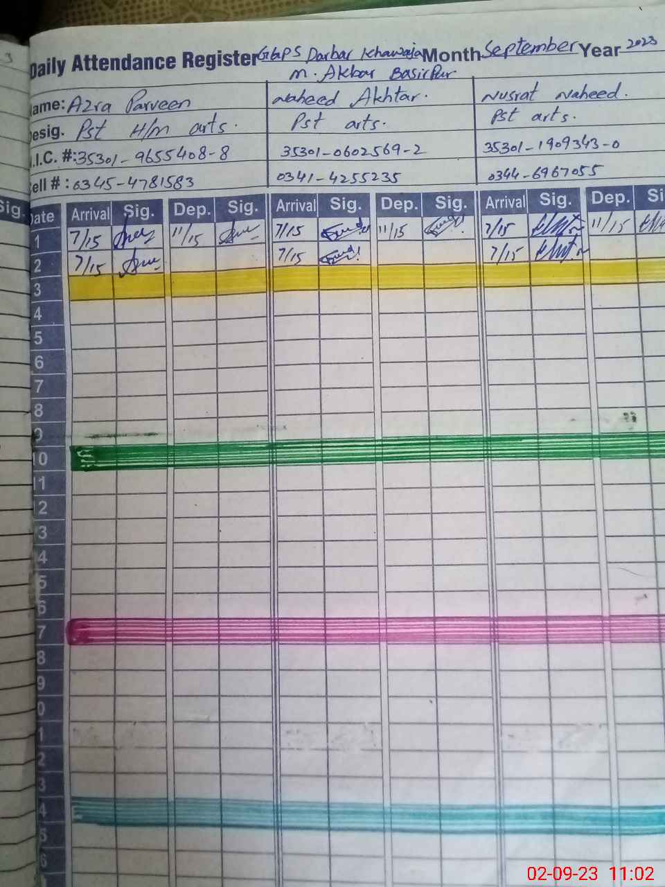 | Name: AZ**** PE**** Designation: (School Headmaster's/Headmistress's) PST Phone/Cell Number: 03**** |