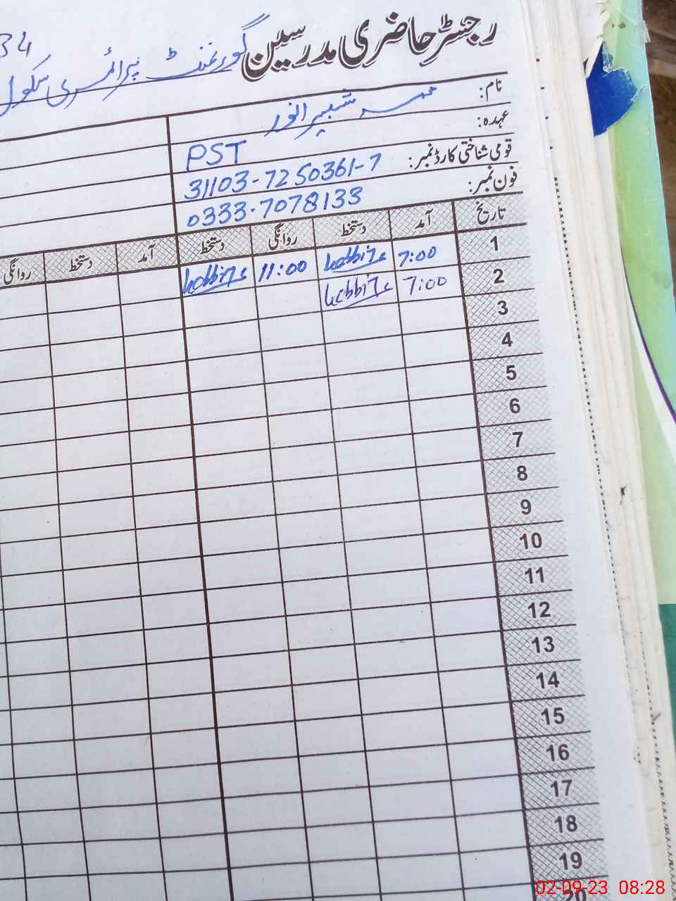 | Name: MSh**** Designation: (School Headmaster's/Headmistress's) Pst Phone/Cell Number: 03**** |