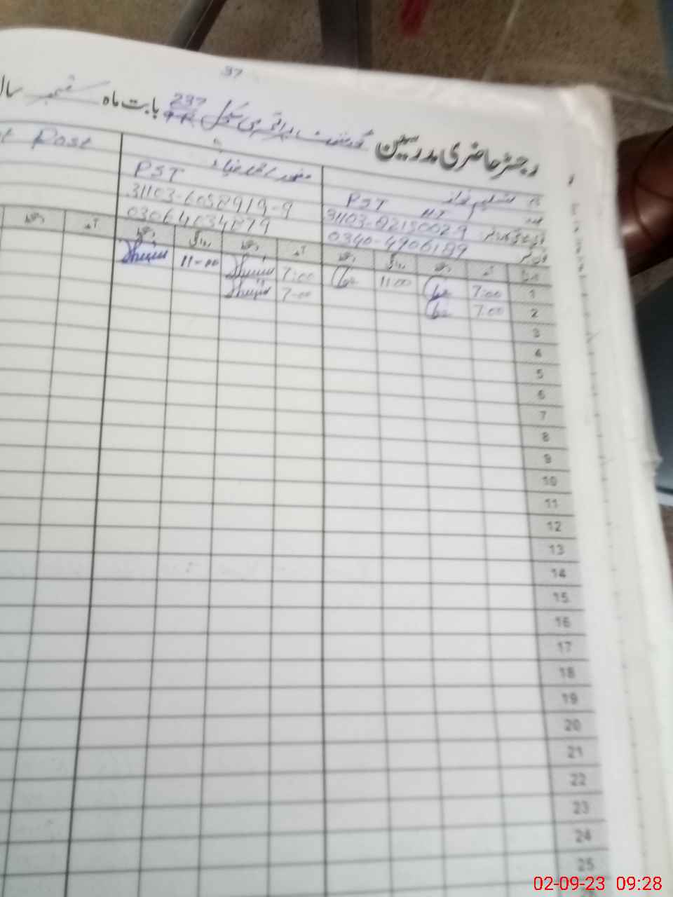 | CNIC | Full Name | Designation | R/C | Absence During Last Calender Month |