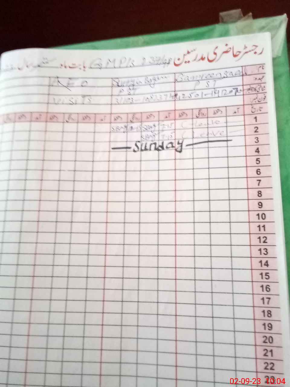 | CNIC | Full Name | Designation | R/C | Absence During Last Calender Month |