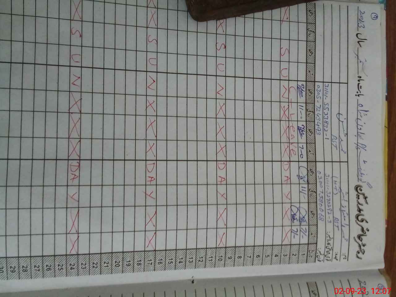 | CNIC | Full Name | Designation | R/C | Absence During Last Calender Month |