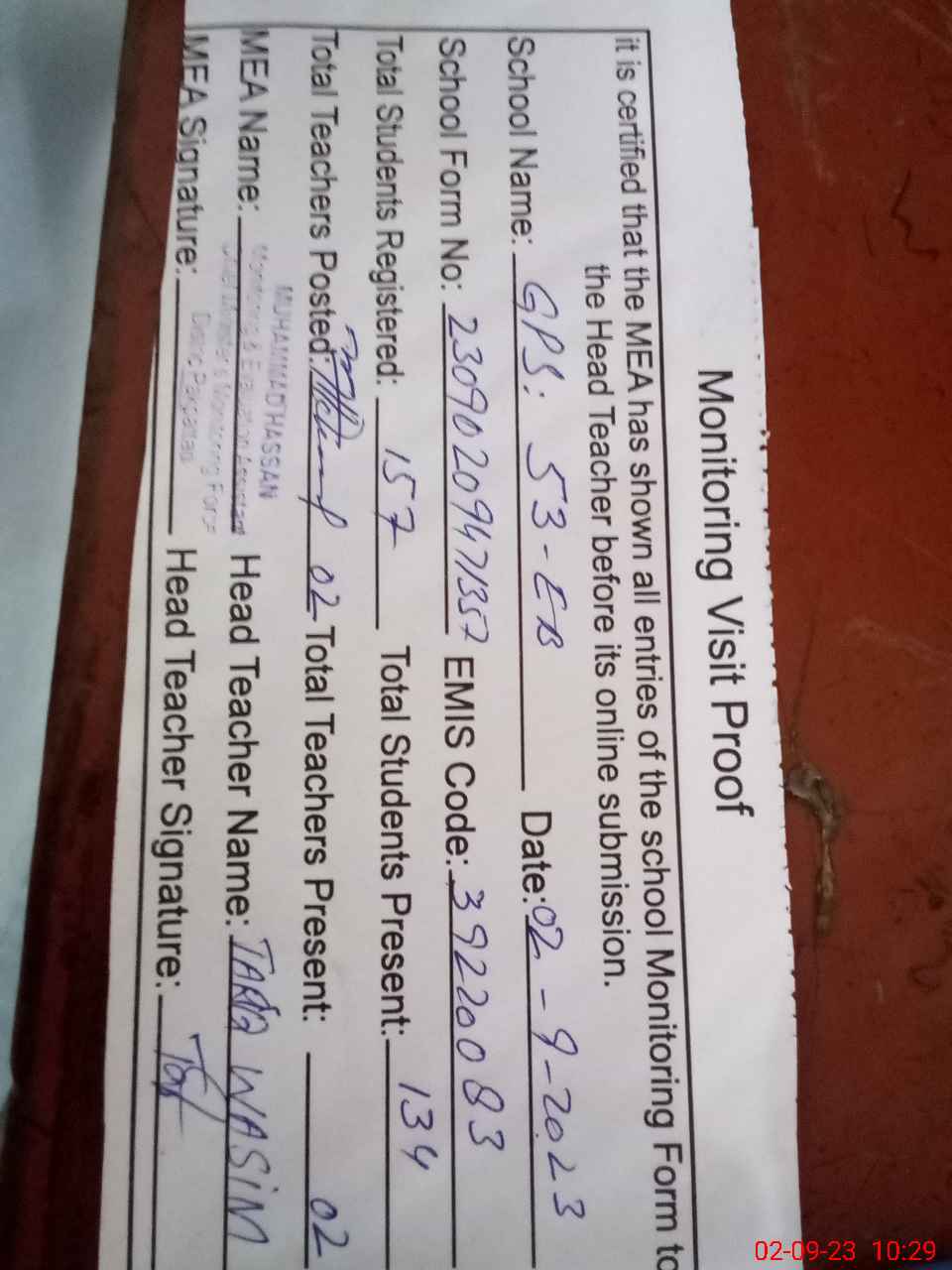 | EMIS Code: 39220083 | Name of School: GPS 53 EB P/O ARIF WALA | |||