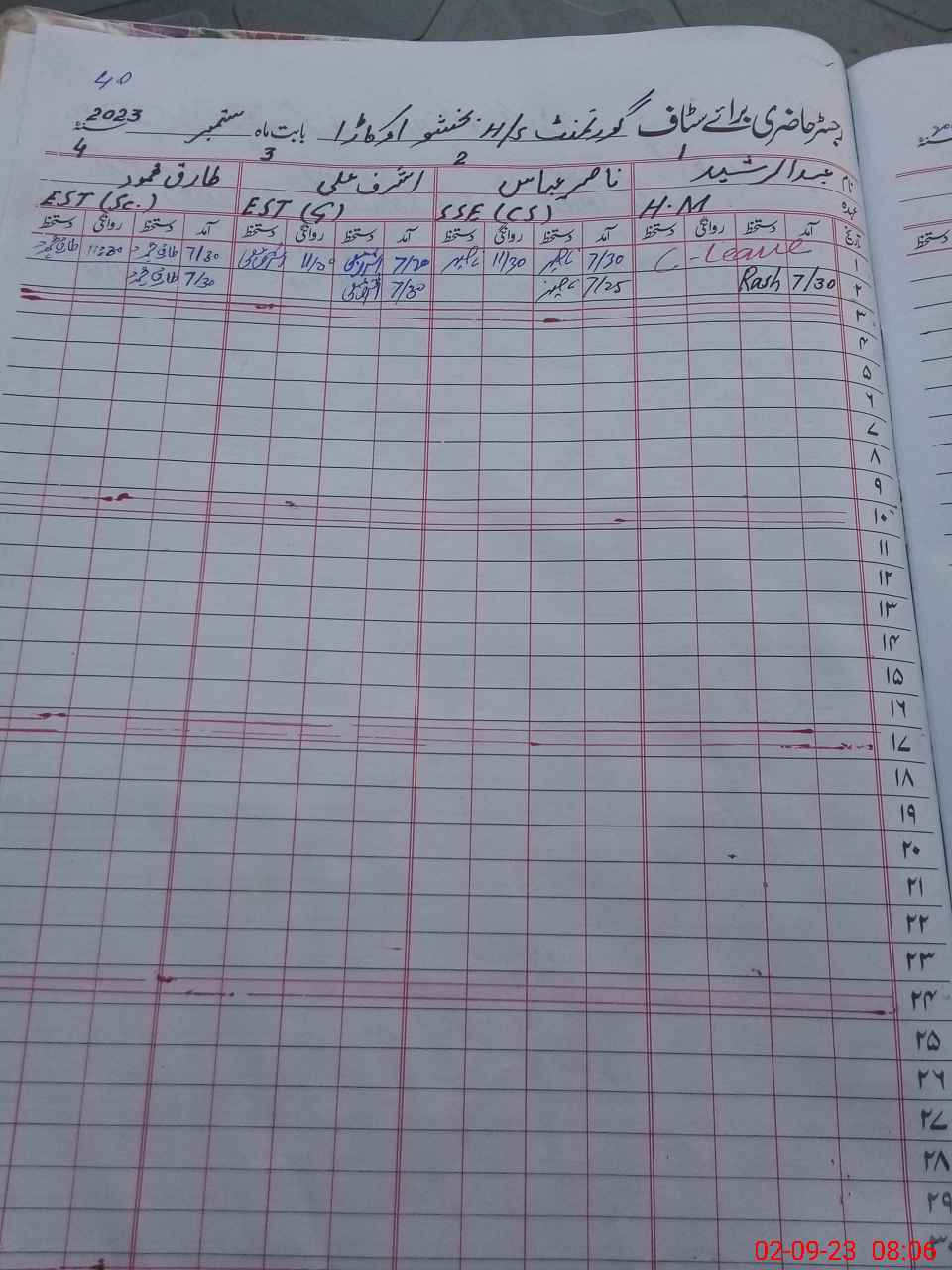 | CNIC | Full Name | Designation | R/C | Absence During Last Calender Month |
