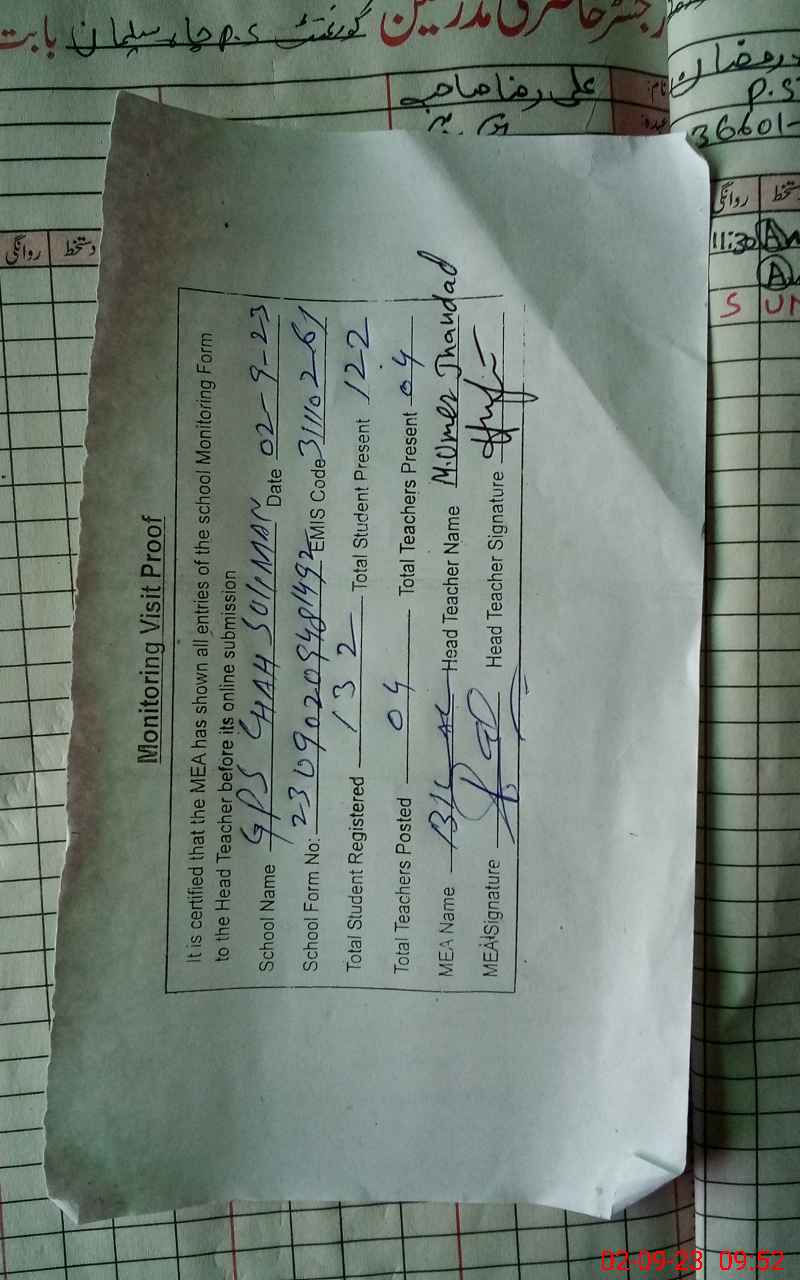 | EMIS Code: 31110261 | Name of School: GPS CHAH SULIMAN | |||