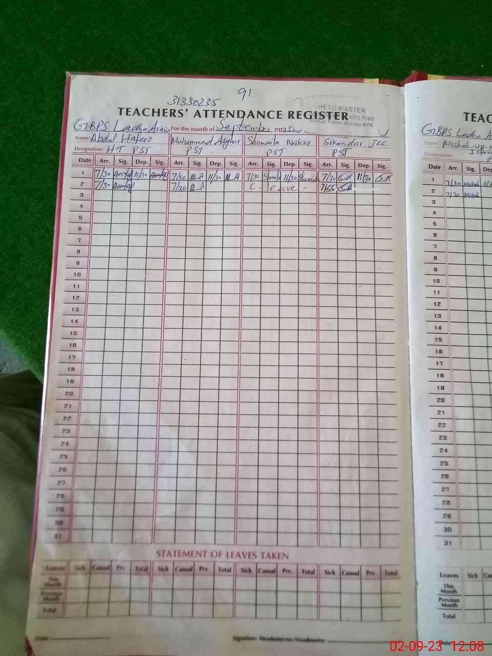| Name: Mu**** As**** Designation: (School Headmaster's/Headmistress's) PST Phone/Cell Number: 03**** |