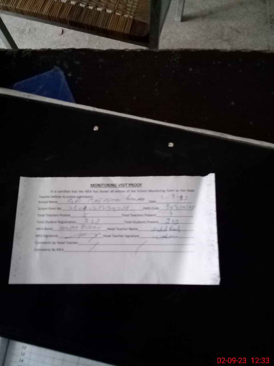 | Attendance Register | Head Teacher | MEA with School | Visit Proof |