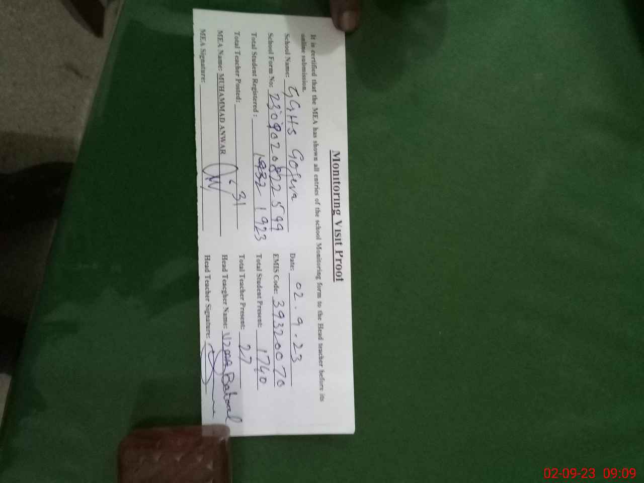 | EMIS Code: 39320070 | Name of School: GGHS SADAR GOGERA | |||