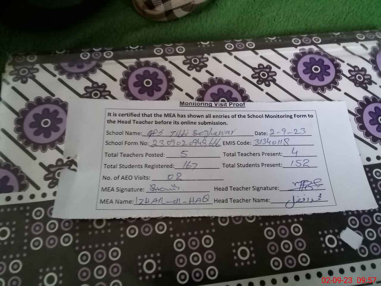 | EMIS Code: 31340118 | Name of School: GPS TIBBI BEGHWER CHAK NO. 168/P | |||
